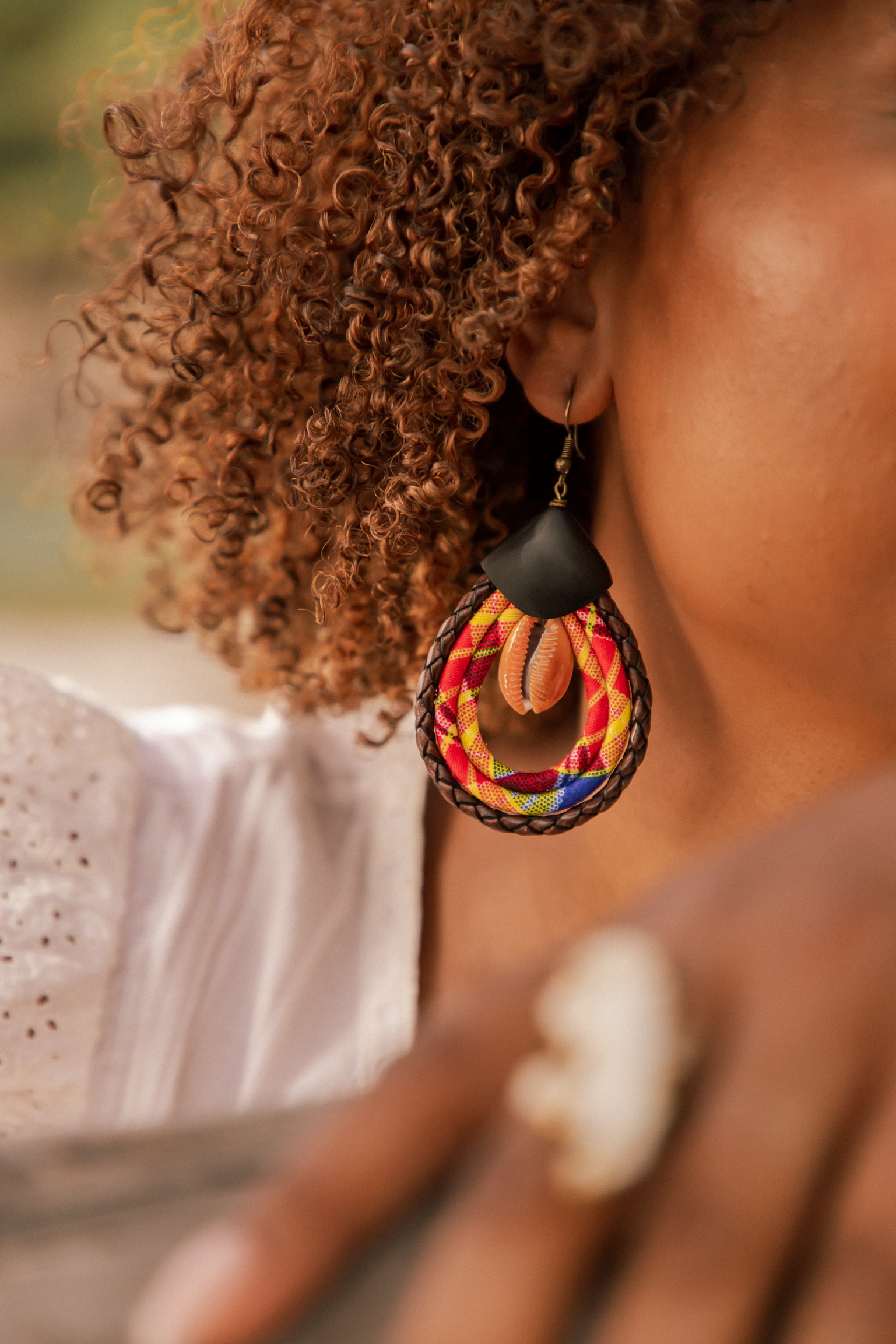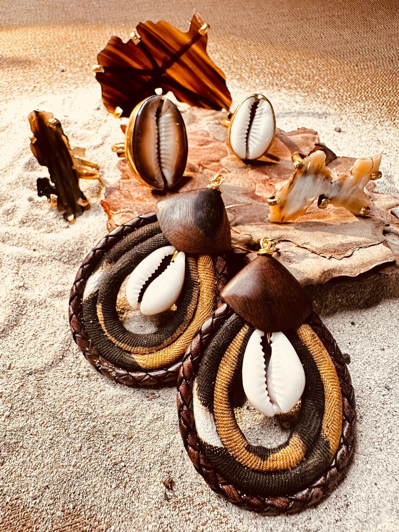 La “Boucle Signature en cuir et Bogolan” établit un lien tangible avec le Mali, célébrant l’artisanat ancestral de ce pays fascinant. Le Bogolan, un tissu de coton admirablement travaillé, est une pièce maîtresse de cette création, conférant à chaque boucle un caractère distinctif. Marié au cuir, il donne naissance à une œuvre d’art qui allie force et finesse. La version Bogolan jaune et graine naturelle est particulièrement évocatrice, alliant avec brio les Antilles et l’Afrique à travers ses matières. Chaque boucle est une ode à l’identité culturelle, un pont entre l’héritage du passé et la créativité contemporaine. En arborant les “Boucles Signature en cuir et Bogolan”, vous portez une part de l’histoire malienne, et témoignez de votre admiration pour l’artisanat authentique.